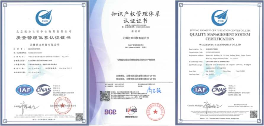 知识产权、质量管理体系认证证书