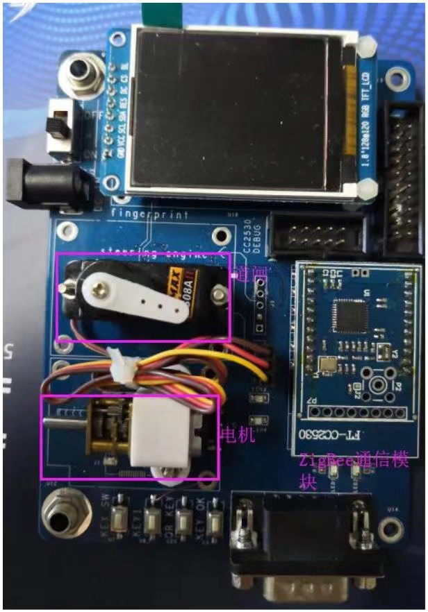 响应“电机控制电路”,包含直流减速电机、舵机、彩色屏、IIC 接口的 EEPROM、zigbee 通信模块等。