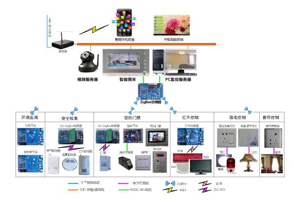 把所有能控制的电器组成一个管理系统,除了可以实现本地对家电的控制之外,还可以通过遥控、场景以及互联网等多种控制方式实现对电器的智能管理与控制。并且可以与环境监控系统结合,实现自动智能化管理。