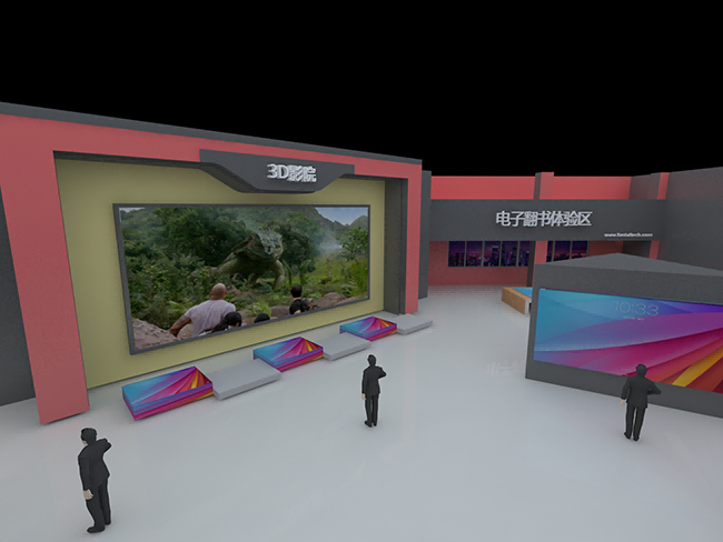 【后台】:设有控制中心,是整个场馆的核心部分,主要包括两大方面:智能展项控制枢纽,场馆强弱电控制。
