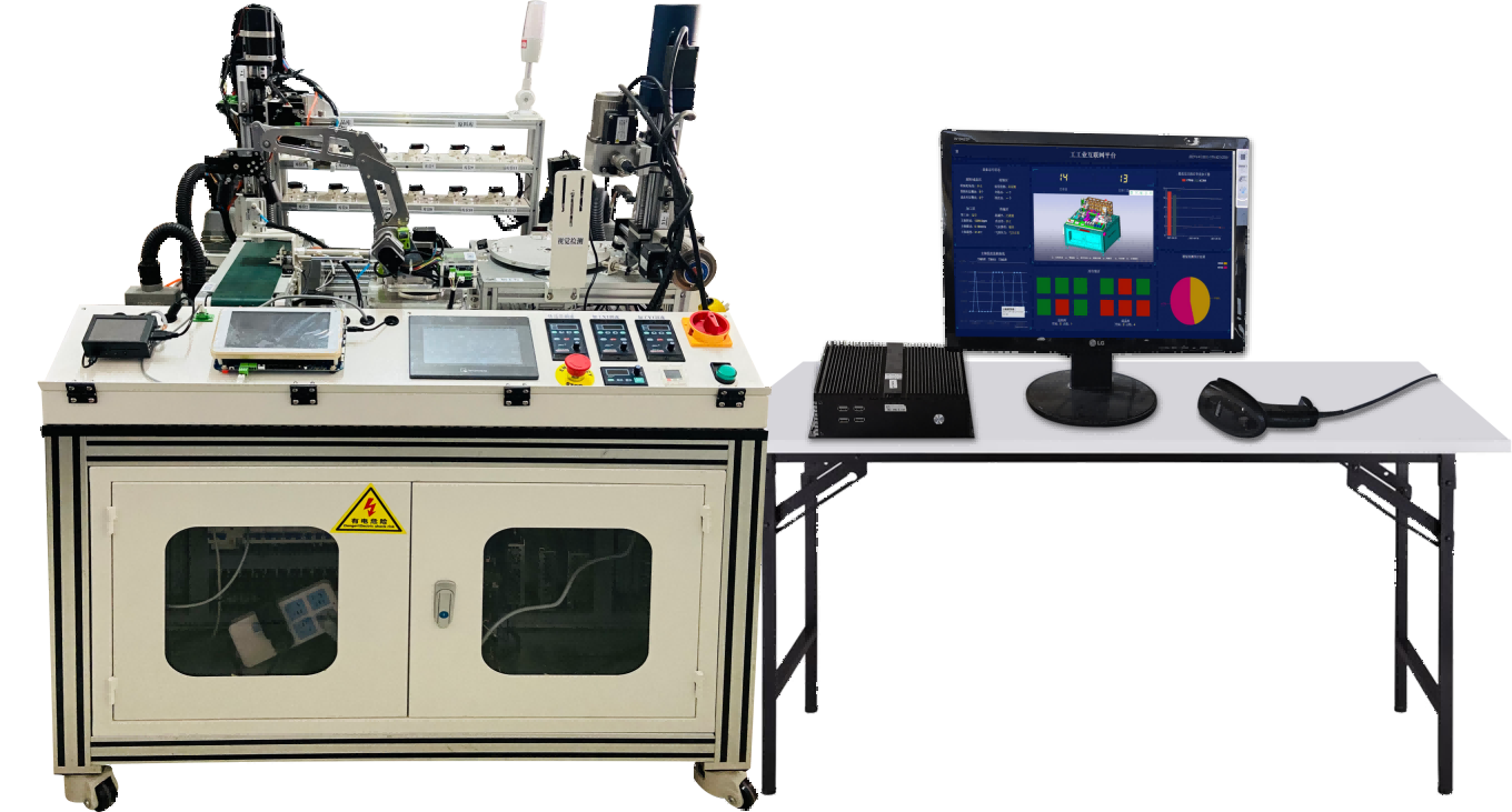 工业互联网综合应用实训台(型号:SeaIOT-EE-IIOT-02),以离散行业全流程产线为背景,具有完整的工业互联网网络、平台、安全、标识体系架构,可以支撑工业互联网专业数据采集、网络互联、安全防护、边缘计算、平台运维、数据分析、标识解析、工业APP等项目实训,还可以开展智能制造专业电气控制及运动控制,人工智能专业机器视觉及质量模型分析等课程实训,满足学生全流程参与互动、多维度融合应用的需求。