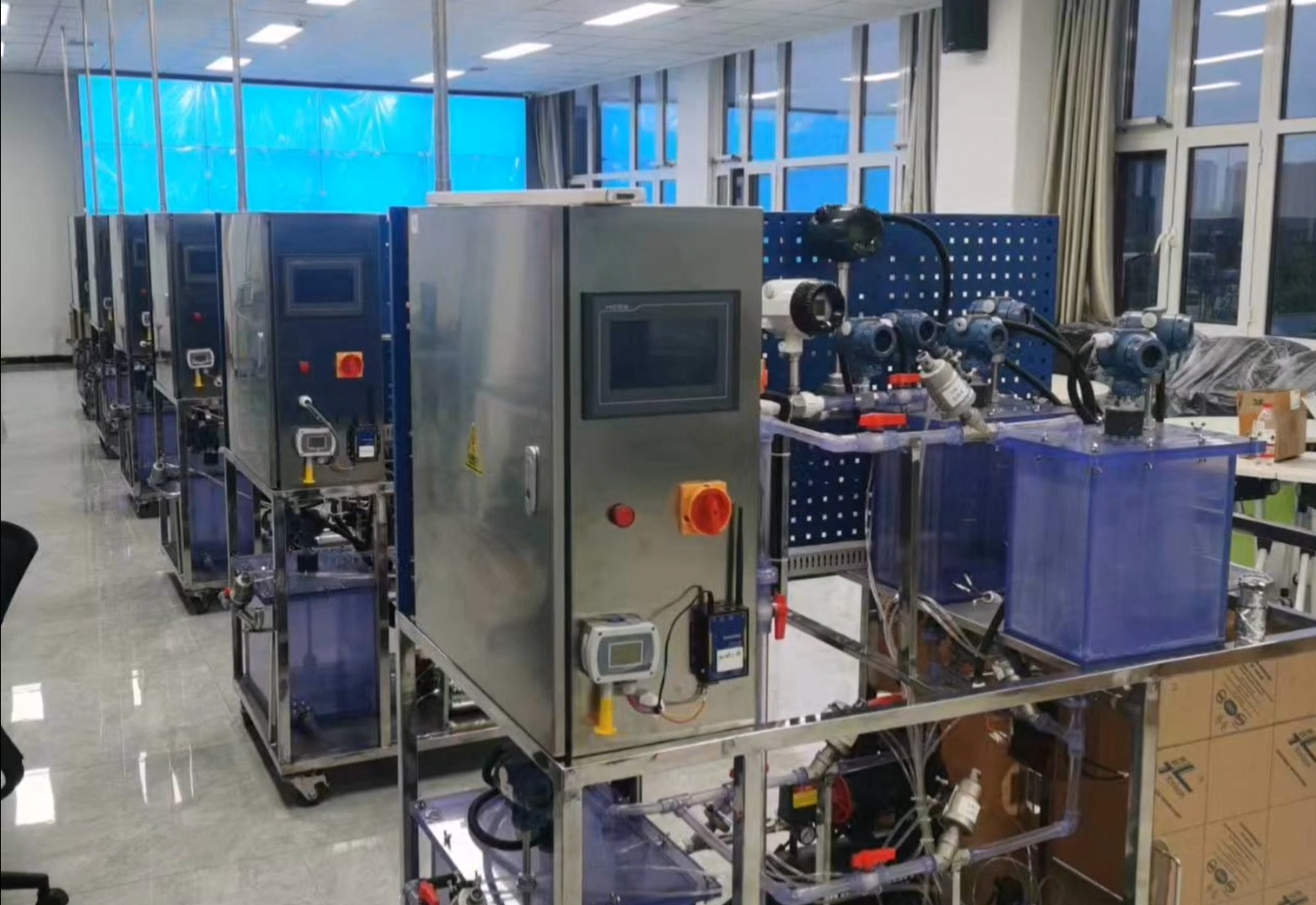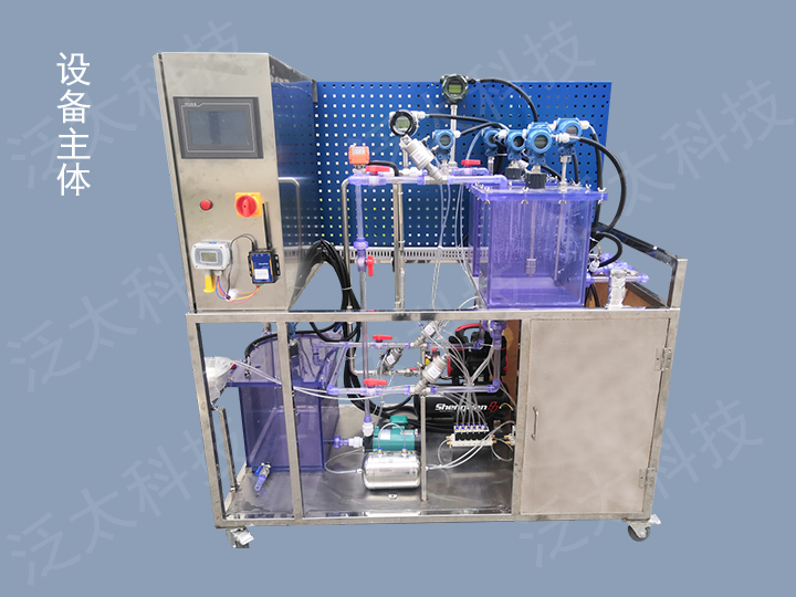 实训台以水、气/汽、电能耗监测为背景,采用液位计、流量计、温度变送器、压力变送器、电磁阀、水泵、气泵、电气控制箱、水箱等装置模拟工业场景下的水循环、气循环、电能监测常见的过程控制系统。其中水箱作为液体盛放和气体导入的气液混合容器,模拟化工行业常见的化工产品制备工艺场景。通过现场监控装置及传输模块,将液位、流量、压力、水温、气温、电压、电流、电量等过程控制参数进行数据采集,传输到能源管理平台,达到工业水、汽、气、电等至少三种数据采集控制、数据传输、数据存储、数据分析及可视化展示的目的。