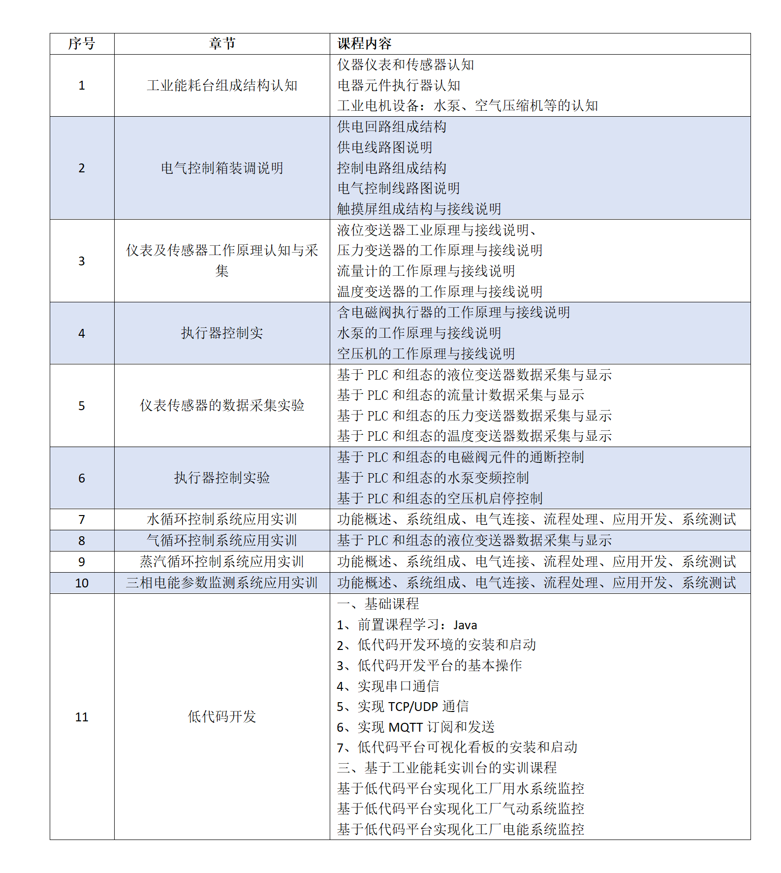 工业能耗监控实训台(型号:SeaIOT-EA-EC-02),是针对工业互(物)联网专业、电气自动化专业、测控技术及仪器专业而设计的过程控制系统,涵盖工业自动化仪表、可编程控制器、工业现场总线、组态开发、低代码开发等技术,帮助学生掌握工业数据采集、过程控制、数据入网、数据分析的方法。是学校师生了解碳达峰、碳中和在行业案例水电汽能耗控制中具体实施的有效途径。