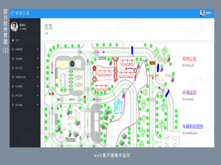 以城市道路交通为原型,融合了无线传感器网络、RFID射频识别、图像识别、无线通信、云服务、M2M中间件等物联网先进技术,依托部署在交通沙盘中的智能车、红绿灯、公交站、RFID设备、模拟摄像机、网络摄像机、Android网关、图像服务器等设备,实现智能车、红绿灯控制、公交站自动播报、路灯控制、智能停车场、违章抓拍、车牌识别、人流量检测、公路灾害智能预警等功能,为物联网专业教学提供了一个完备的应用实训系统。