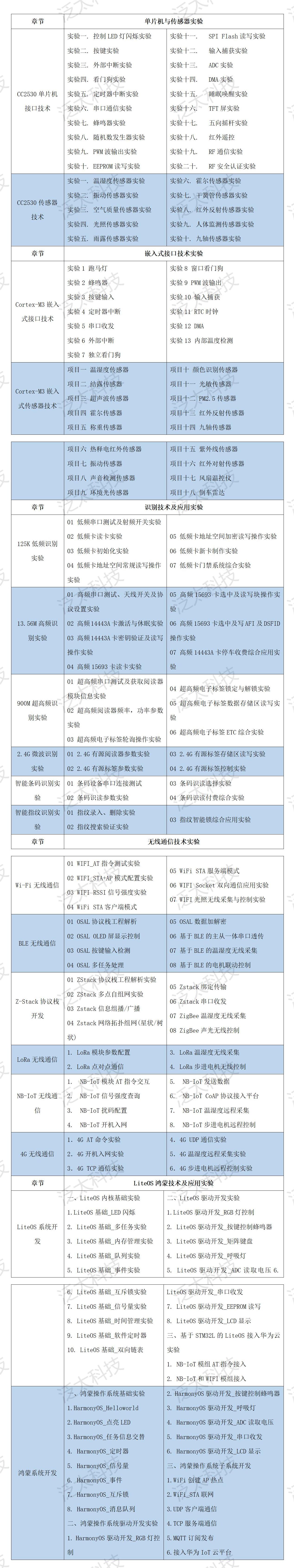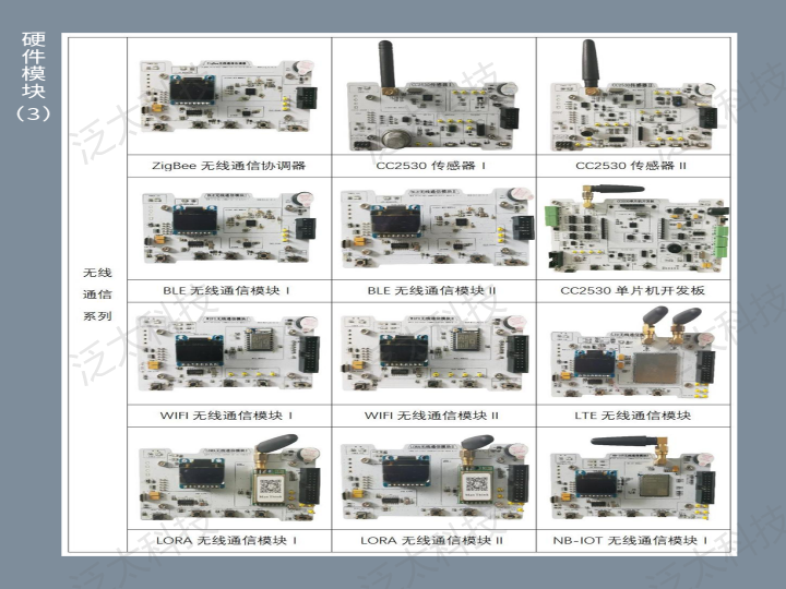 物联网技术开发平台(型号:SeaIOT-FTable-02)是一款基础教学实验开发平台,由1个通用平台,多个系列硬件模块,上位机软件及教学资源三部分组成,主要针对物联网、电子信息、计算机等专业的单片机与传感器、嵌入式接口技术、识别技术、无线通信技术、智能产品、人工智能等课程的教学实验。