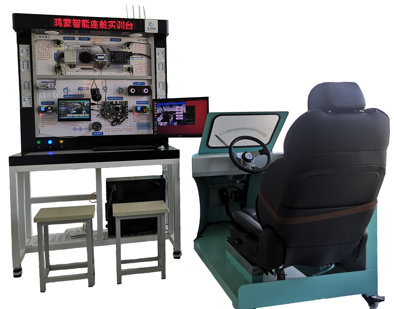 产品包括智能座舱实训台体和智能座椅舱体两部分。